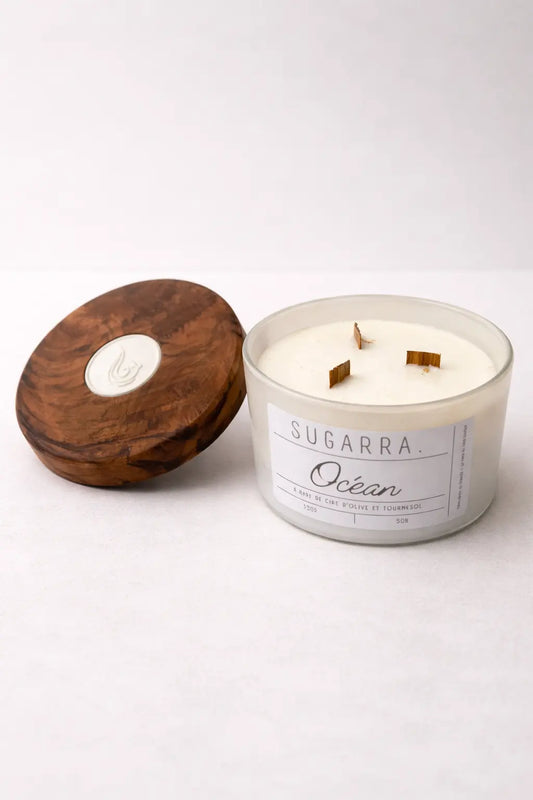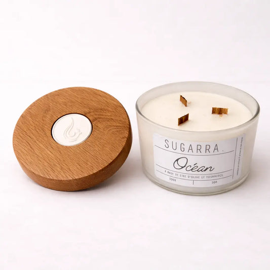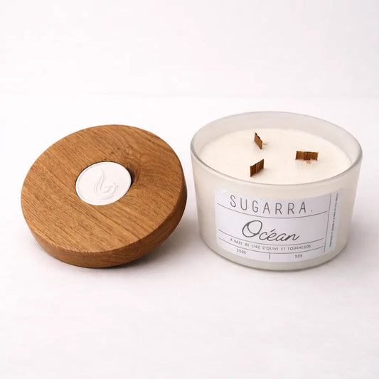 Bougie 350g avec couvercle en Chêne