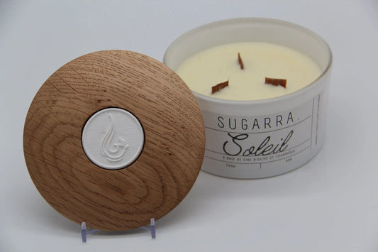 Bougie 350g avec couvercle en Chêne – Pièce n°02