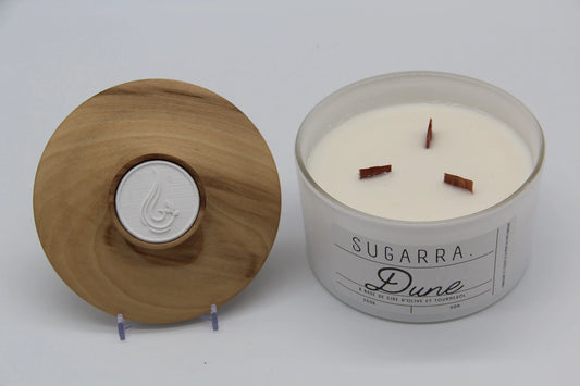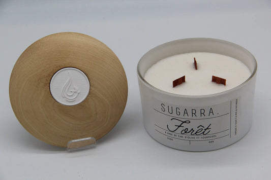 Bougie 350g avec couvercle en Bois spéciaux – Pièce n°03 ( Tulipier )
