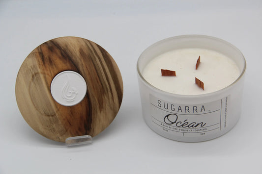 Bougie 350g avec couvercle en Bois spéciaux – Pièce n°02 ( Tulipier )