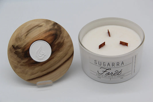 Bougie 350g avec couvercle en Bois spéciaux – Pièce n°01 ( Tulipier )