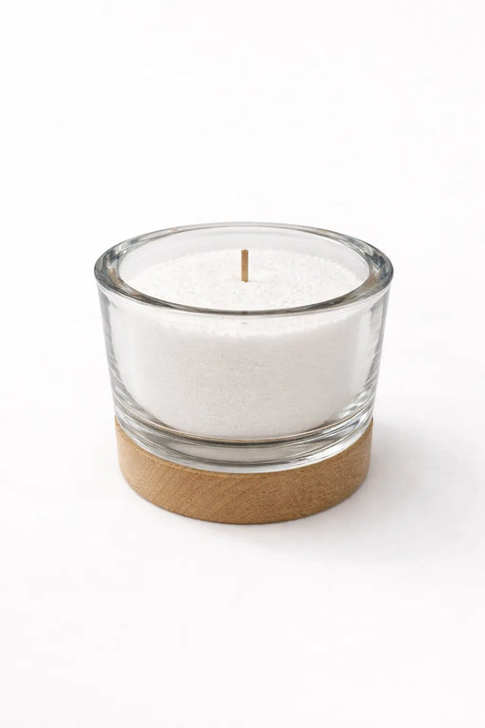 Cette collection associe un verre transparent épais à un socle en bois massif, pour un rendu élégant et naturel.