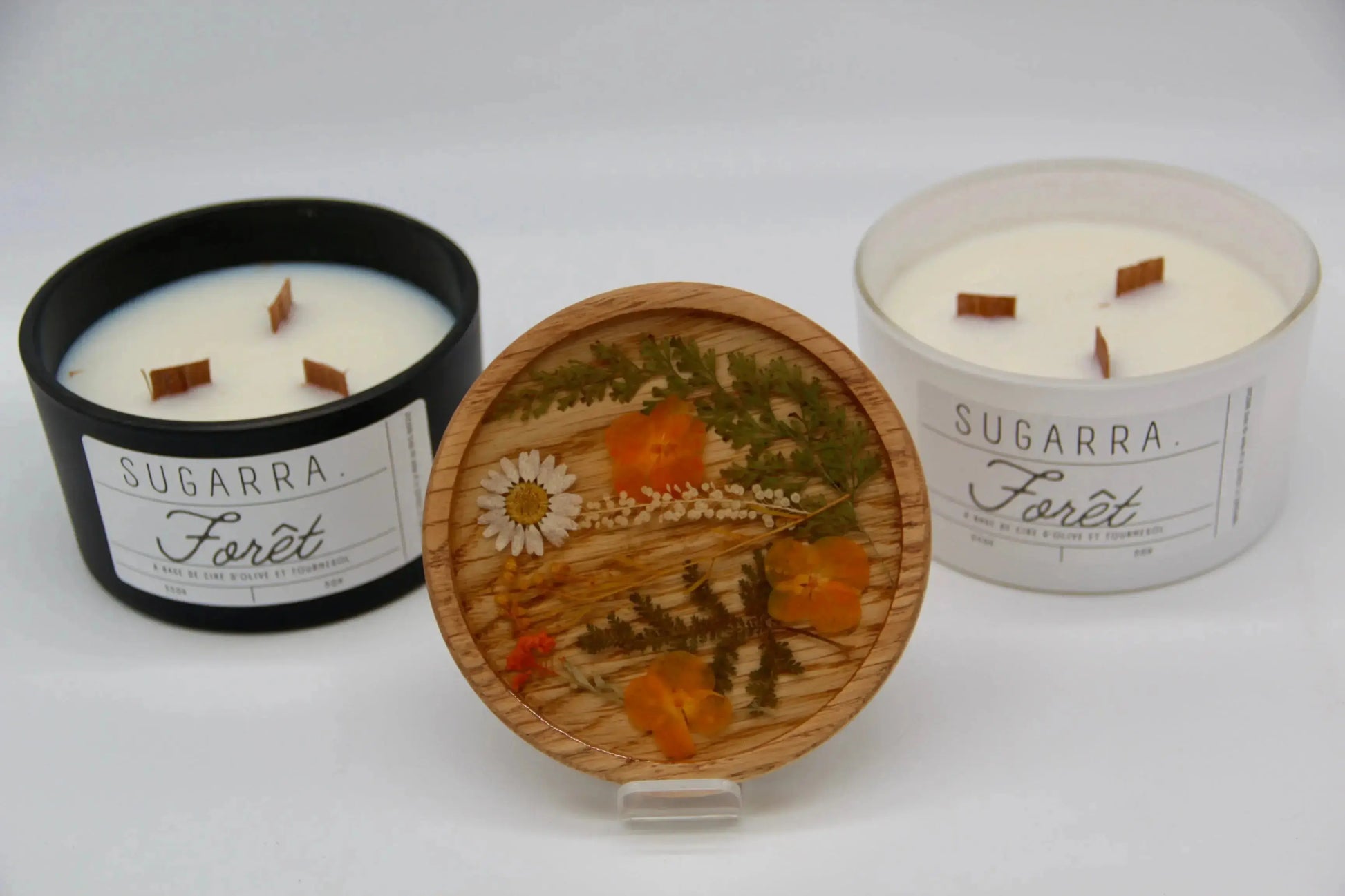 Ils laissent la beauté des fleurs séchées et les particularités du bois s’exprimer pleinement. Le veinage, les nuances de couleurs et les imperfections naturelles rendent chaque pièce absolument unique.