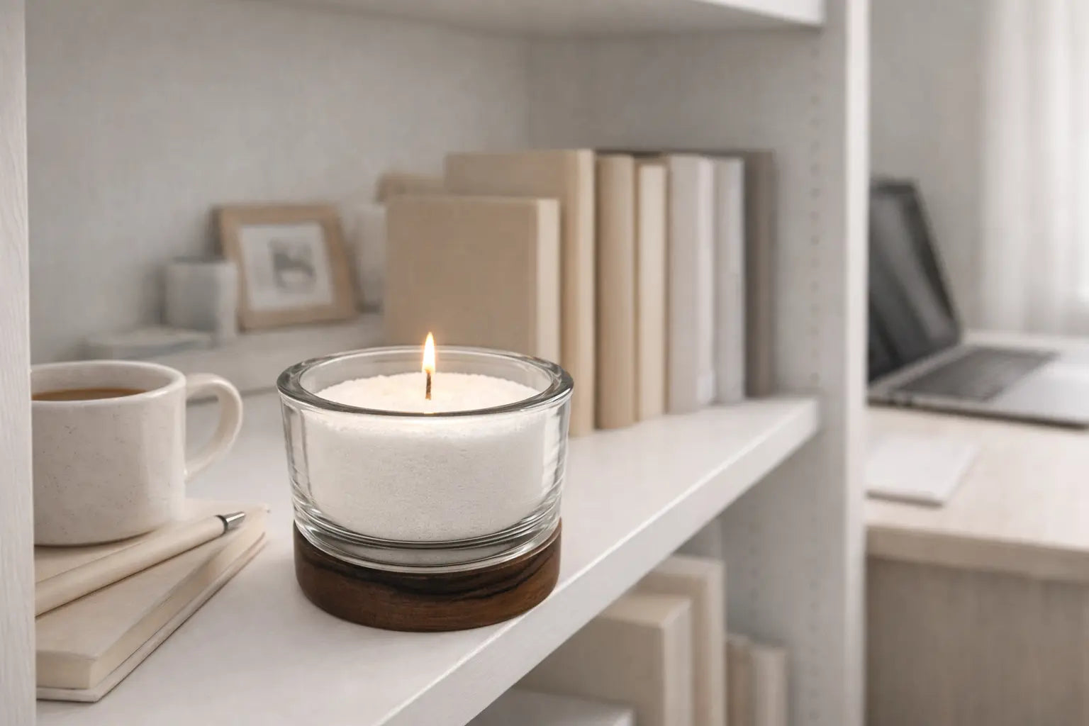 - Allumez les deux mèches. Lors du premier allumage, laissez la cire fondre jusqu’aux bords pour une combustion uniforme.